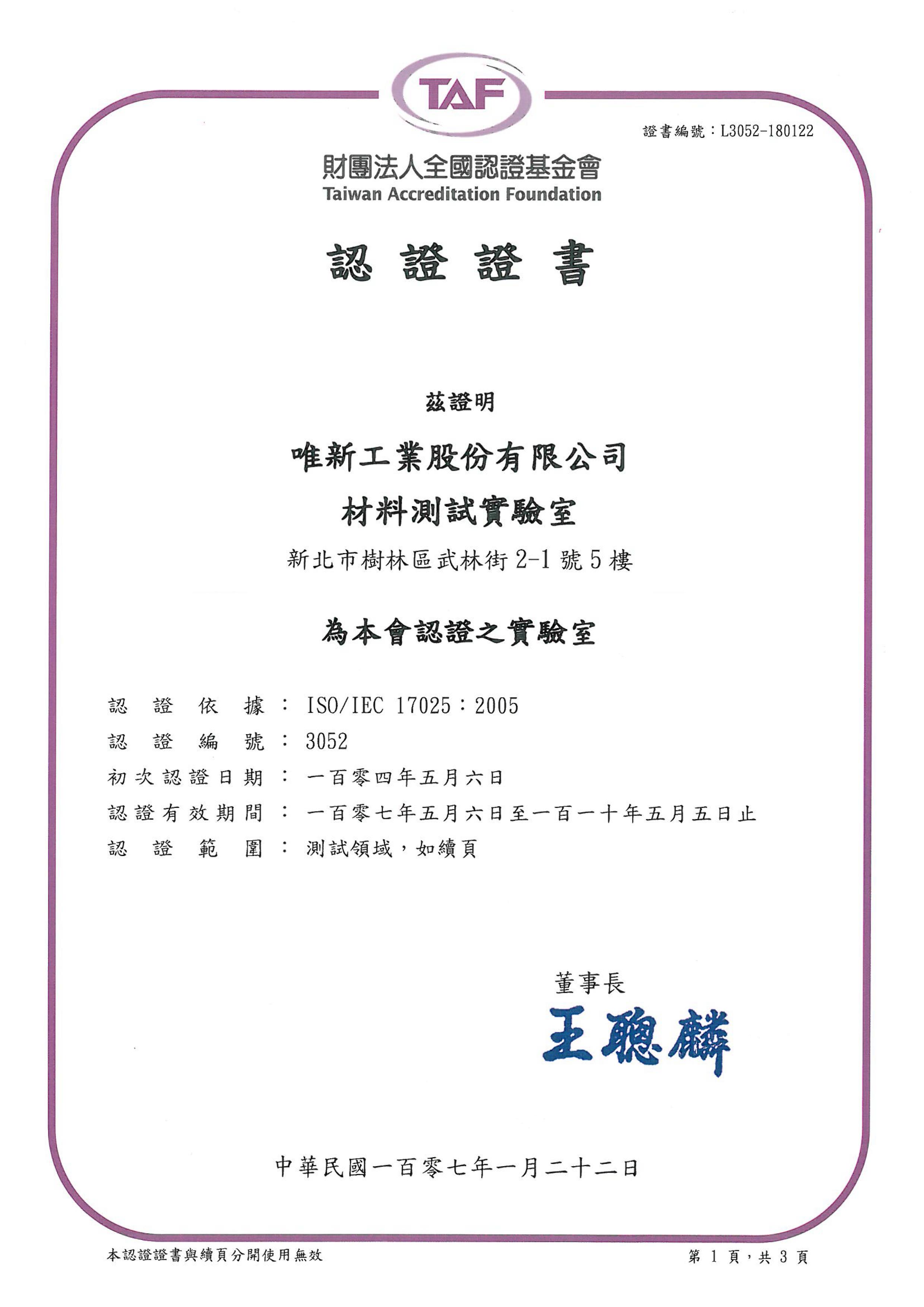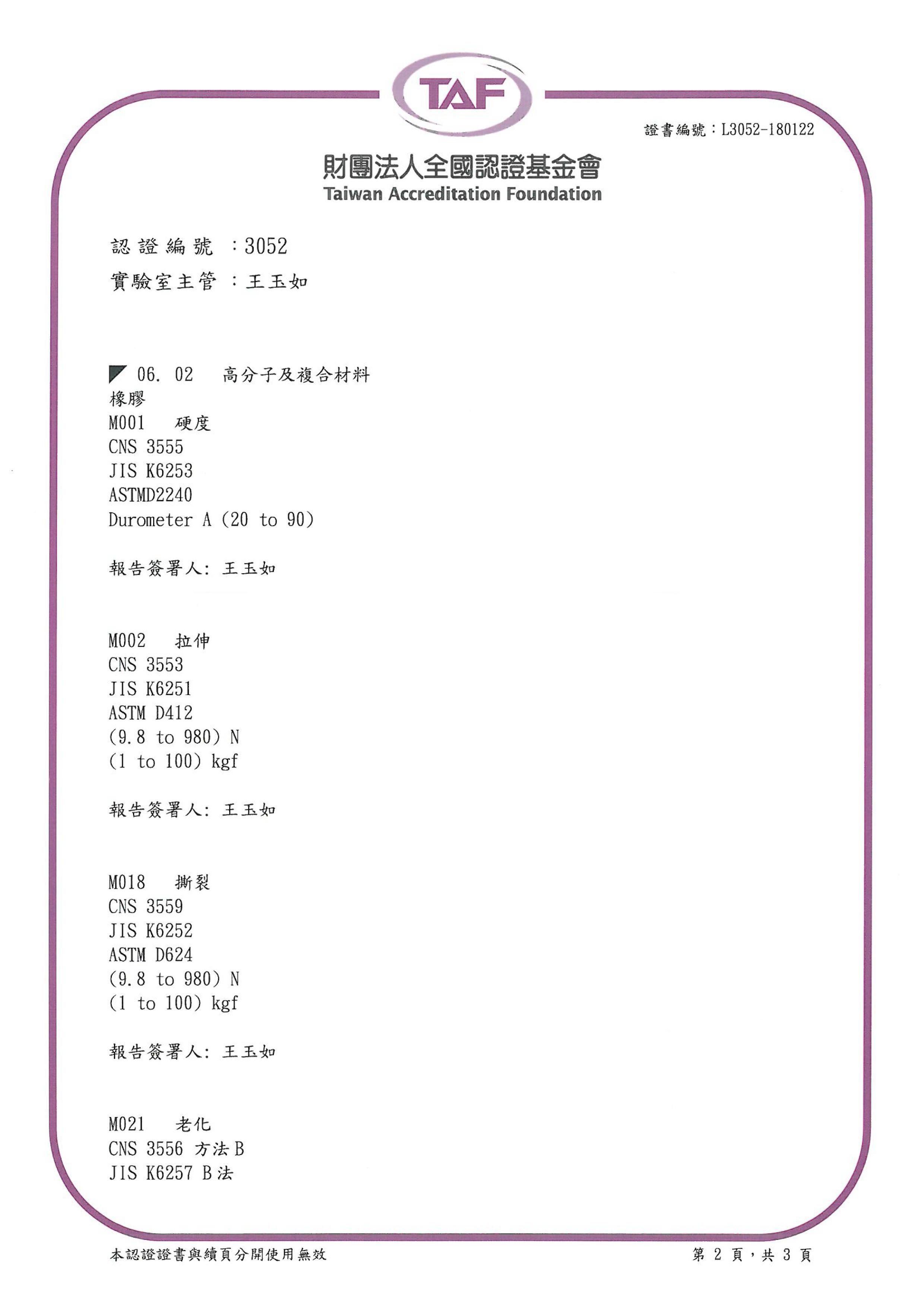 材料測試實驗室新增列測試項目通過。 日期: 2018-06-01